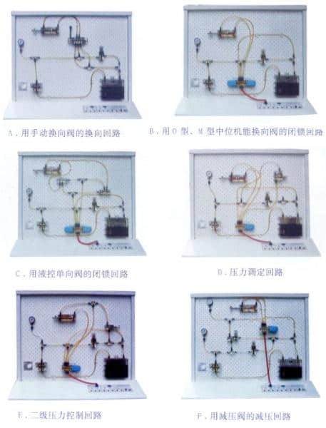 该产品曾多次参加国家教委举办的全国性教学仪器展示订货会,在会上获得了国家教委,浙江省教委领导同志的好评与广大老师的喜爱,现已有全国各省市的200多所学校选择与使用了我公司的产品,卓越的产品性能,诚实的经营作风,获得了广大学校领导、教授、老师的信赖,并为我们的产品改进与发展提供了大量宝贵意见与建议。YY-18型透明液压传动演示系统(99款)与透明液压传动实验室成套设备推出之际,特向他们致以崇高的敬意。各种机械对液压传动的要求是多种多样的,一般多是由方向控制回路,压力控制回路,速度控制回路,顺序控制回路等基本功能回路组成。本演示系统通过对以上四大基本功能的十八种基本控制回路的实验演示(扩展实验可达60种),使学生能熟识二十多种常用液压元件的结构,性能及用途,掌握十几种基本回路的工作过程及原理,提高学生故障处理及解决问题的能力,在实验演示中得到启发,引发兴趣,利用它可以对本产品所提供的各种元件容限内的其它油路进行实验(如图设计,毕业设计)。