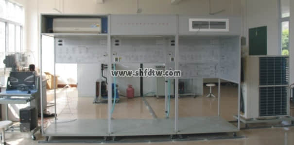 制冷压缩机组,冷凝器,蒸发器,离心风机,电热加湿装置,一次、二次加热装置,数显温度仪表,压差计(±100Pa),超压保护装置,压力表(-0.1-2.5 Mpa),转子流量计,热电偶,电流表,电压表,风量测量装置(笛形管),不锈钢台架及控制柜等。