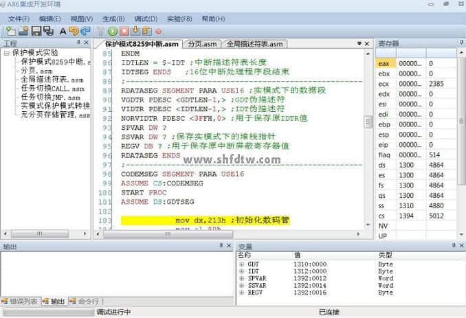 点击添加图片描述(最多60个字)编辑9. A86集成开发环境调试保护模式汇编程序界面