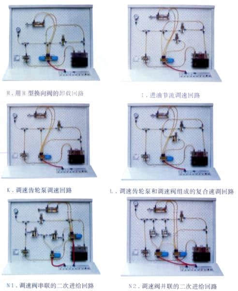 该产品曾多次参加国家教委举办的全国性教学仪器展示订货会,在会上获得了教委,浙江省教委领导同志的好评与广大老师的喜爱,现已有全国各省市的200多所学校选择与使用了我公司的产品,卓越的产品性能,诚实的经营作风,获得了广大学校领导、教授、老师的信赖,并为我们的产品改进与发展提供了大量宝贵意见与建议。YY-18型透明液压传动演示系统(99款)与透明液压传动实验室成套设备推出之际,特向他们致以崇高的敬意。各种机械对液压传动的要求是多种多样的,一般多是由方向控制回路,压力控制回路,速度控制回路,顺序控制回路等基本功能回路组成。本演示系统通过对以上四大基本功能的十八种基本控制回路的实验演示(扩展实验可达60种),使学生能熟识二十多种常用液压元件的结构,性能及用途,掌握十几种基本回路的工作过程及原理,提高学生故障处理及解决问题的能力,在实验演示中得到启发,引发兴趣,利用它可以对本产品所提供的各种元件容限内的其它油路进行实验(如图设计,毕业设计)。