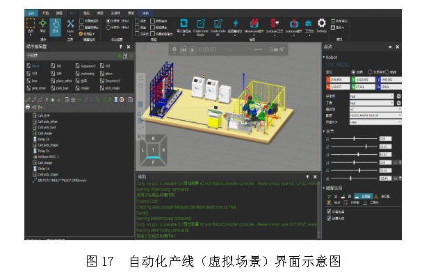 机器人离线编程仿真系统可通过编程三维图形进行动画模拟仿真,可将生成的可用代码传到机器人控制柜,以控制机器人运动,完成加工任务。同时仿真软件系统支持用户二次开发API接口。