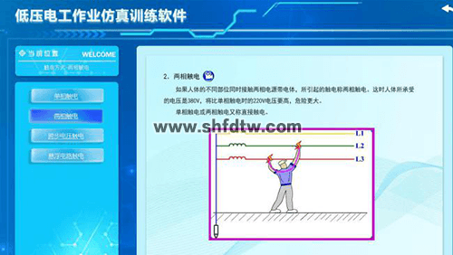 本产品依据中华人民共和国劳动和劳动安全行业标准(LD/T81.2-2006)《“维修电工”职业技能实训和鉴定设备技术规范》与教育部有关专业教学大纲而设计研制。包含电工初步知识(电工基础、电工仪表使用、导线安全连接、安全用电工具、安全用电标志),触电急救(触电的方式、安全防护措施、接地与接零保护、人工呼吸,心肺复苏等急救方法),风险排除(灭火器类型、灭火器的使用),电工电子基本操作(包括低压电器、电机与变电器、照明电路、电子技术)等4大模块,15个实训单元,72个实训项目,采用3D虚拟仿真技术展示。软件以技能为核心,操作步骤为主线,以学生交互训练为主体,具有三维可视化、智能化、全交互的特点,集职业性、情境性、过程性、交互性和灵活性于一身,性价比极高。为职业教育与技能实训、鉴定信息化、现代化提供了丰富的教学资源。