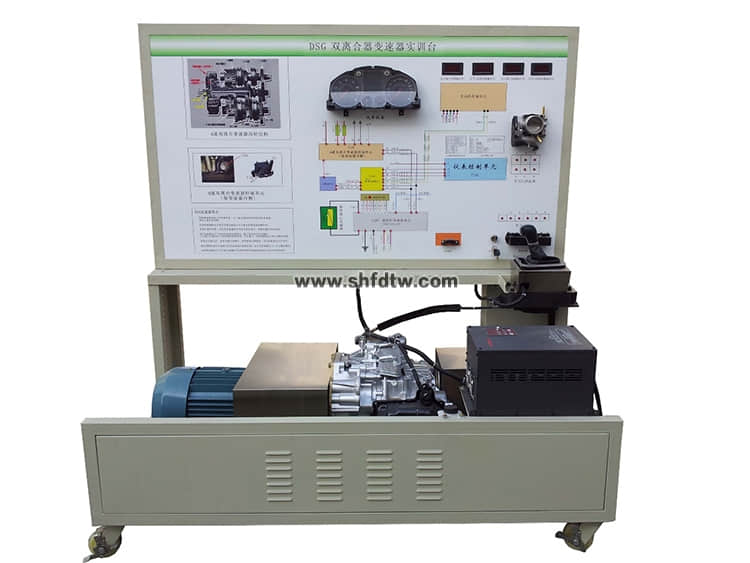 该设备采用 全新 全新大众速腾02E(六档)电控双离合器自动变速器总成为基础,可调速三相异步电动机做动力源,对双离合器自动变速器进行档位显示、空档起动、前进档及倒档运行等工况实践操作。真实展示电控双离合器自动变速器组成结构和工作过程。