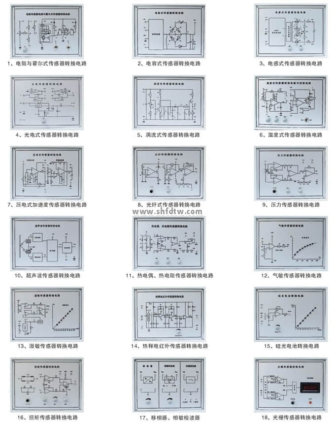 2、每种传感器每个独立,传感器上印有原理图与接线口,学生做实验时快捷方便,而且老师可以带到课堂上讲课用。