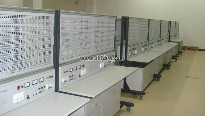 4、实训桌桌面采用25mm麻灰色高密度层压板封边特制,有效提高绝缘等级;实验桌底部装有至少4个导向轮,方便实训台架移动;