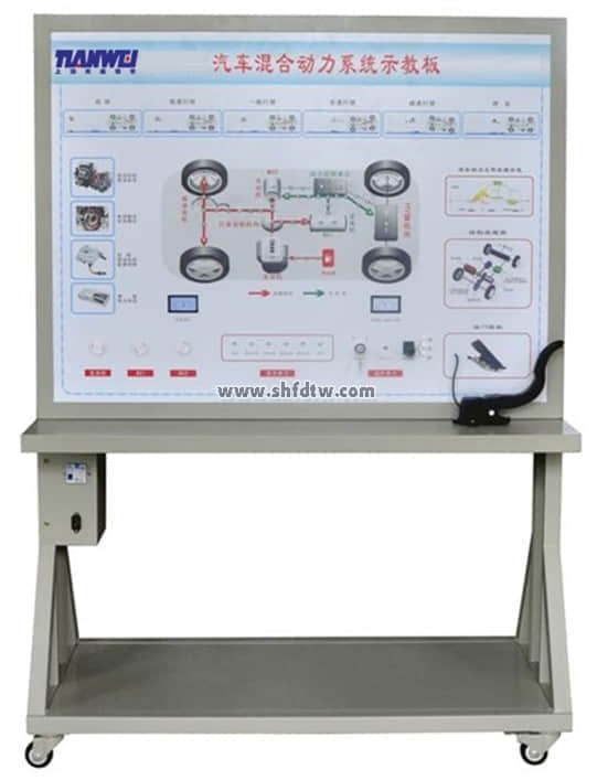 2、示教板面板采用4mm厚耐腐蚀、耐创击、耐污染、防火、防潮的高级铝塑板,表面经特殊工艺喷涂底漆处理;面板打印有永不褪色的彩色电路图与工作原理示意图;学员可直观对照汽车混合动力系统结构原理图和实物,认识和分析汽车混合动力系统的工作原理。