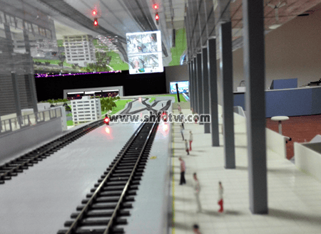 沙盘可根据用户要求设置多个城市轨道交通车站,每一个车站配置一个站房和站台。站房、站台使用彩色亚克力板。精美逼真的山水装饰采用亚克力和ABS板。车站和上部建筑照明采用安全电压。
