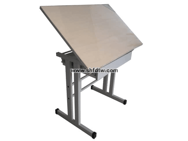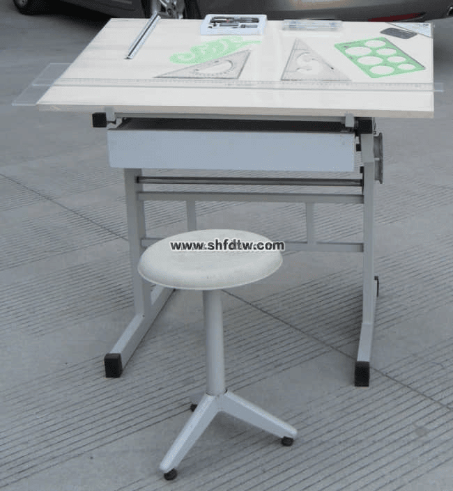 多功能实用绘图 规格(L×W×H):900×660×800mm (标配三聚氰胺桌面)桌脚柱采用1.0×25×70mm矩管,着地横管采用1.0×25×50mm矩管,图板边框和拉衬由1.0×20×20mm的方管组成。升降和调角轴采用厚度为0.6mm,直径为19mm的不锈钢管,采用滑槽调节图板桌面的倾斜度。脚套是PVC材料。抽屉采用钢制材料(改进型)耐用可靠有钢管材料采用高质钢管,都经过酸洗、磷化、静电喷塑、高温固化或镀锌的技术处理,所有铁件部分焊接都用二氧化碳气体保护焊,。零配件用优质钢材。