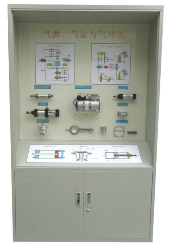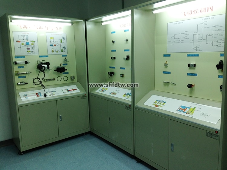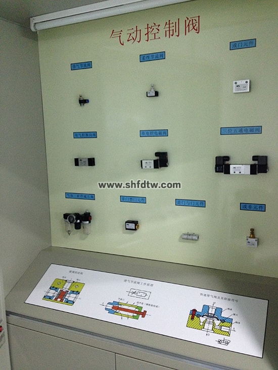 气动液压示教陈列柜采用实物或模型以图文资料展示常见液压、气动元件的基本类型与基本结构。陈列柜展示内容以普通高等教育规划教材为依据,挑选核心内容,在有限的展示空间中提供内容丰富知识。陈列柜需采用环保材料制造,机械运转无噪声;用电安全;进行宜人化设计;需能够适应现代绿色实验室的要求。
