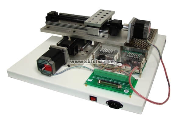 本实验平台是集运动控制卡、PLC可编程控制器、步进电机及驱动器、开关电源、XY控制平台及运动控制软件于一体的理想教学实验系统。XY控制台是一个采用滚珠丝杠传动的模块化十字工作台,可以实现平面内X、Y轴方向的运动控制,用于实现目标轨迹和动作。实验系统软件包括基于轴的控制、基于坐标系的控制、命令编辑和运行、数控代码编辑和运行、复杂运动轨迹控制。