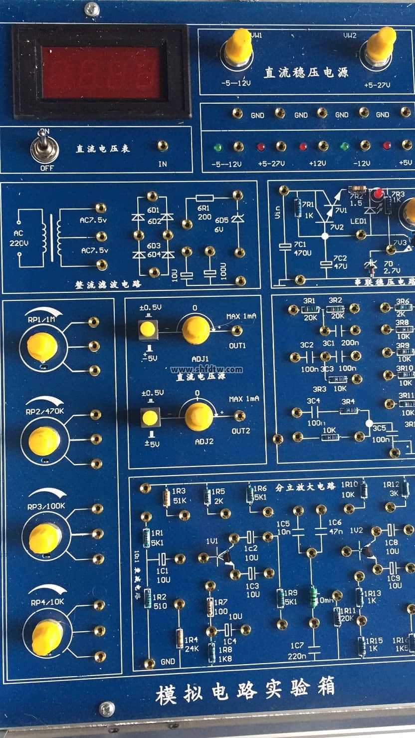 该实验箱的实验板正面采用进口波纹漆为底,印有原理图及符号,装有相应元器件,增加了学生的感性认识,需要测量及观察的部分,装有锁紧式接插件,使用直观、可靠,维修方便、简捷,实验电路采用单元电路方式设计,每个单元电路以基本电路为主,再连接不 同的元件为该电路参数或通过不同的单元电路组合,完成不同的实验要求。该箱由一体形铅合金型材制成,色泽造型高雅气派,箱体牢固可靠,不变形,重量轻,绝缘安全性能好,开关箱盖方便可靠, 外型美观。