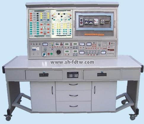 实训屏为铁质双层亚光密纹喷塑结构,铝质面板,为实训挂箱提供交流电源、直流稳压电源、恒流源、函数信号发生器、测试仪表及实训器件等,具体功能如下: