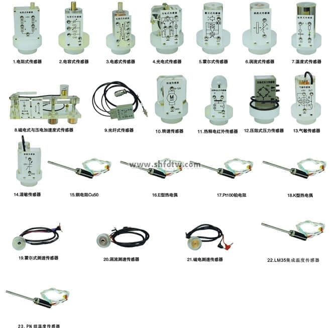 2、每种传感器每个独立,传感器上印有原理图与接线口,学生做实验时快捷方便,而且老师可以带到课堂上讲课用。
