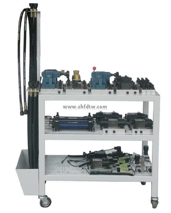 (1)本实验系统采用了钢质喷塑实验桌、高耐磨的桌面板。整个实验台结构合理,造型美观。一张实验桌可供多位学生进行液压综合实验,优化共享资源,提高产品的性价比。操作面积大,操作方便,美观大方,坚固耐用。