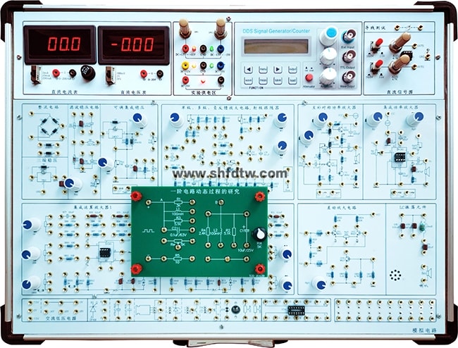 实验箱由铝木合金箱体、高性能线性电源、和实验电路组成。其中实验电路采用功能模块方式,电路原理和元器件符号清晰,实验用元器件可以焊装在线路板的反面,安全可靠,不易损坏,也可以装在线路板的正面,元件直观可见,感性认识强,正面还有实验电路原理图,使学生在实验时对原理一目了然。