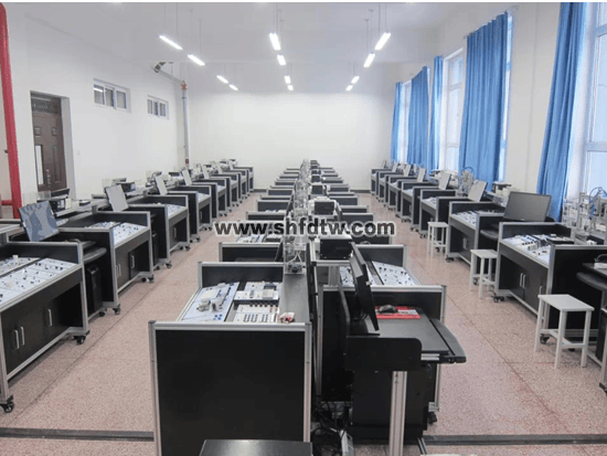 单片机控制功能实训考核装置采用铝木台式结构。实训台的抽屉柜用于存放实训模块,抽屉柜与台面之间布置实训模块安装支架,最上一层是工作台台面。用于技能竞赛时在台面上放置设备安装底板,在底板上安装试题拟定的单片机控制装置需要的模块,连接控制电路,编写的控制程序输入单片机后,按下运行指令开关,单片机控制装置就按程序运行。放置在单片机实训室中,这就是一张实训台。当讲解理论或实训项目中的相关知识时,可以当做课桌;当需要进行实际操作时,将台面打开,就露出放置在安装支架上的模块,在需要的实训模块间按实训要求连接电路,编写控制程序,就可以按照设计的实训项目进行单片机技术的教学。