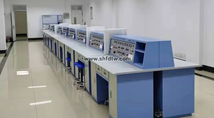 学生实验桌:全钢结构,一桌为两座,桌的左右各有一个柜,柜中存放元器件及贮存板,中间抽屉存放工具、万用表、导线等;实验台控制面板采用金属双面喷塑;桌面采用25mm厚进口防火板,外观美观、坚固、耐用;尺寸:1600×700×1070mm。