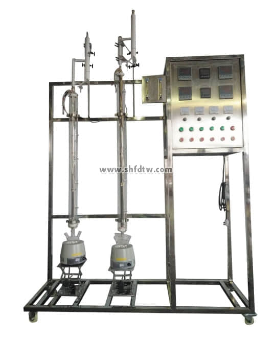 电热器、蒸馏釜、萃取精馏塔、溶剂回收塔、冷凝器、数字温度显示仪表、回流系统、流量计、不锈钢框架、仪表柜。