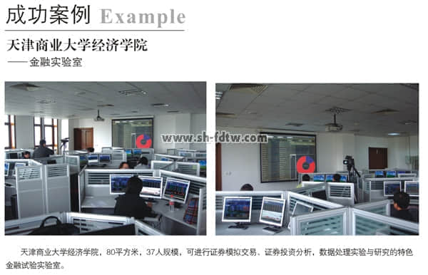天威公司通过为院校建立专业的金融实验室或完善提升相关设备,使学生得到实际训练从而激发自我的探究意识和创新动机,为学生就业和创业打下坚实的基础。此类仿真的模拟实验室,不仅节省大量的人力、物力和财力,并且可加深学生对所学知识的理解,提高学习效率。相信透过为院校营造现代型、资源型、实践型、信息化、学习型的校园环境而赢得品牌效应。