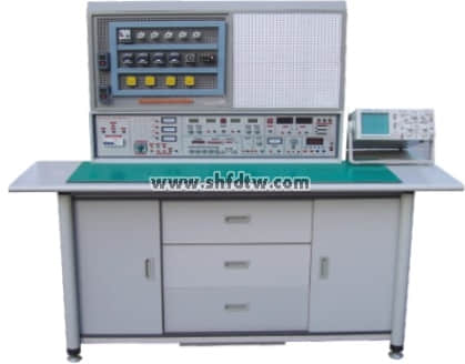 实训屏为铁质双层亚光密纹喷塑结构,铝质面板,为实训挂箱提供交流电源、直流稳压电源、恒流源、函数信号发生器(包括频率计)、测试仪表及实训器件等,具体功能如下: